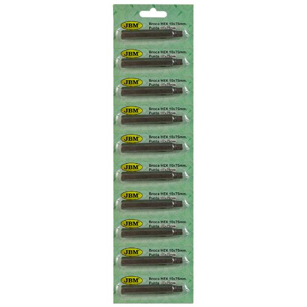 Jbm 10379 - Broca hex.boca 10x75mm largo,punta 8mm